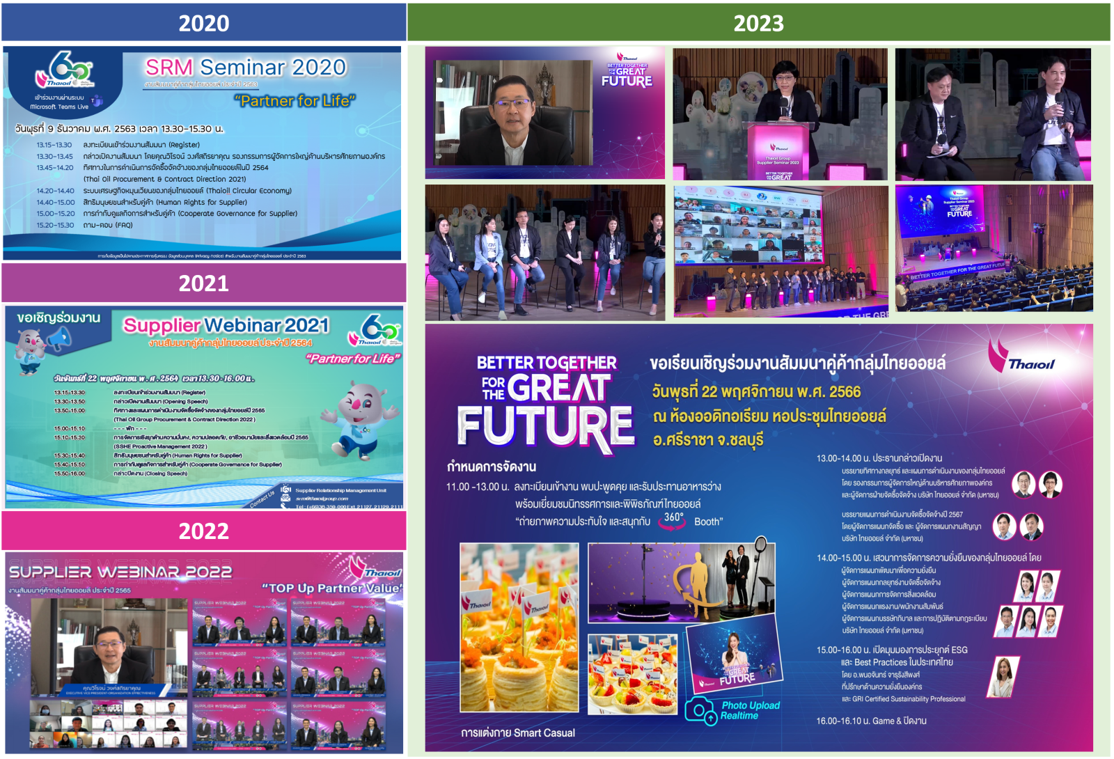 Development of Suppliers in Accordance with Thaioil Group's Sustainable Practices (Sustainable Code of Conduct for Suppliers of Thaioil Group: SCOC) Since 2015, all new suppliers registering through the system are required to accept the SCOC, and their adherence is monitored. To promote continuous improvement, Thaioil Group encourages the adoption of the SCOC by all suppliers, communicating it through the website and annual supplier seminars.
