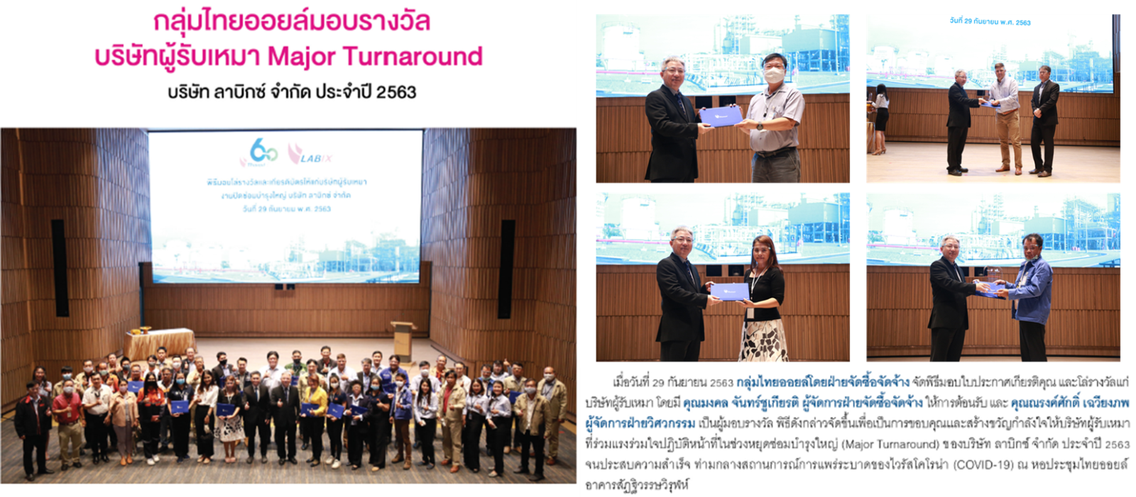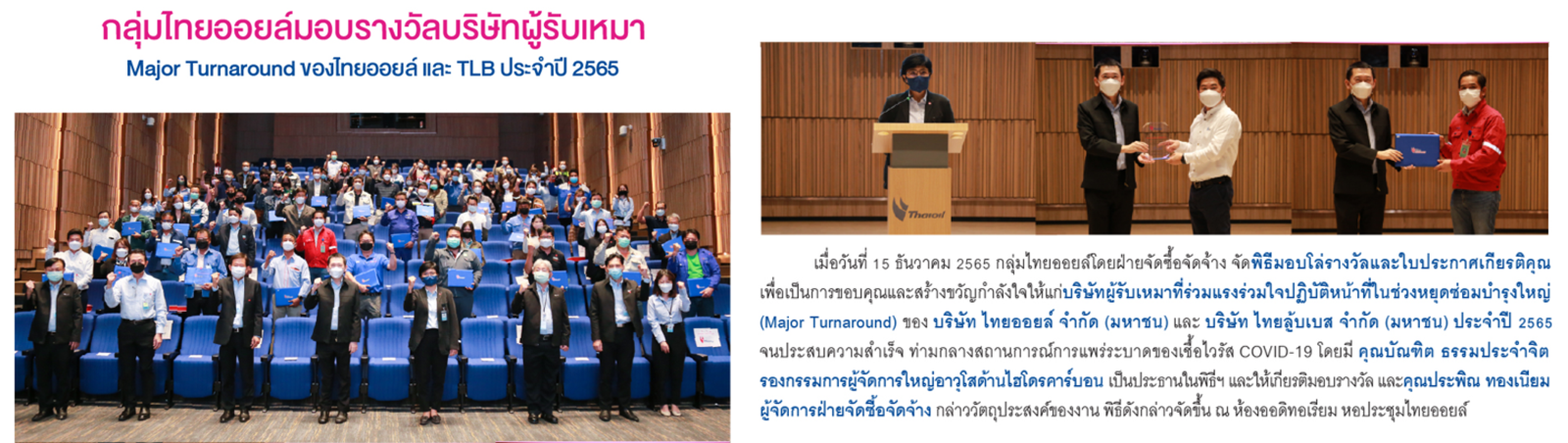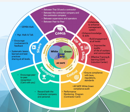 Safe White Green Program:ตั้งแต่ปี 2564 โปรแกรม “Safe White Green” เป็นความคาดหวังขั้นพื้นฐานของกลุ่มไทยออยล์ต่อบริษัท คู่ค้า