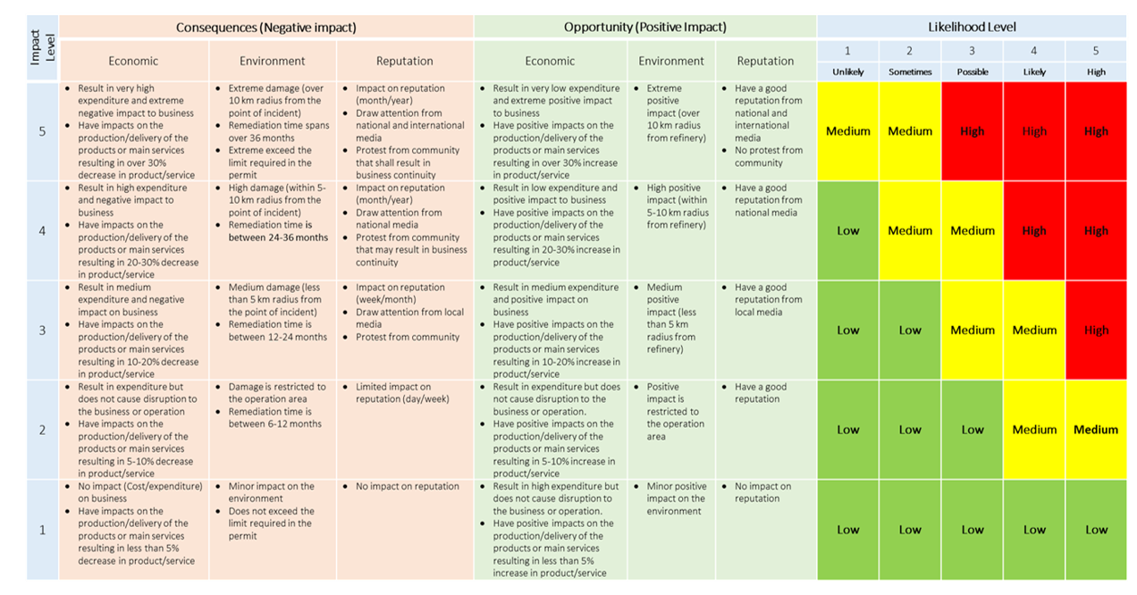 เมทริกซ์การประเมินความเสี่ยง (RAM) สำหรับการจัดหาที่ไม่ใช่น้ำมันดิบ แสดงไว้ตามรูปด้านล่าง