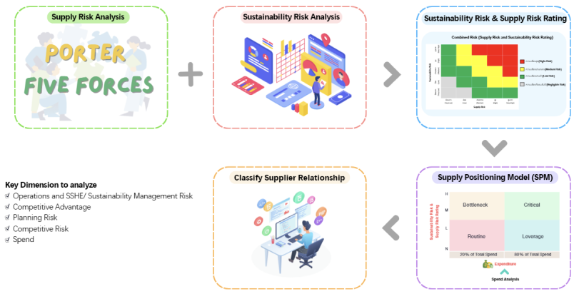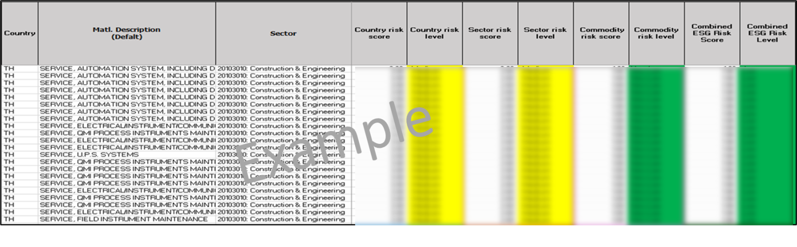 Screen each supplier group according to Country, Sector and Commodity ESG risks,supply risks, spending and business relevance (e.g., financial) etc.