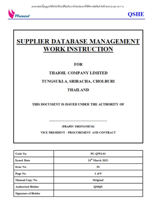 Verify supplier’s QSHE policy and procedures by Thaioil group.