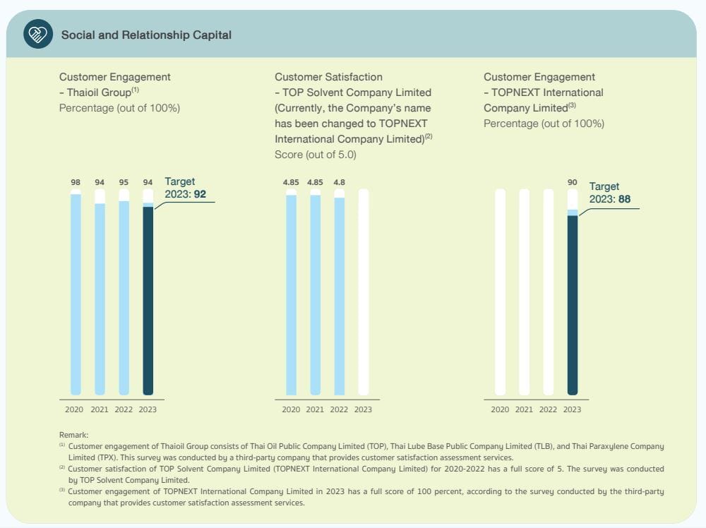 Through Thaioil Group’s comprehensive operations, encompassing both product manufacturing and service delivery, the Company has achieved a higher level of customer engagement that surpasses the predetermined targets.