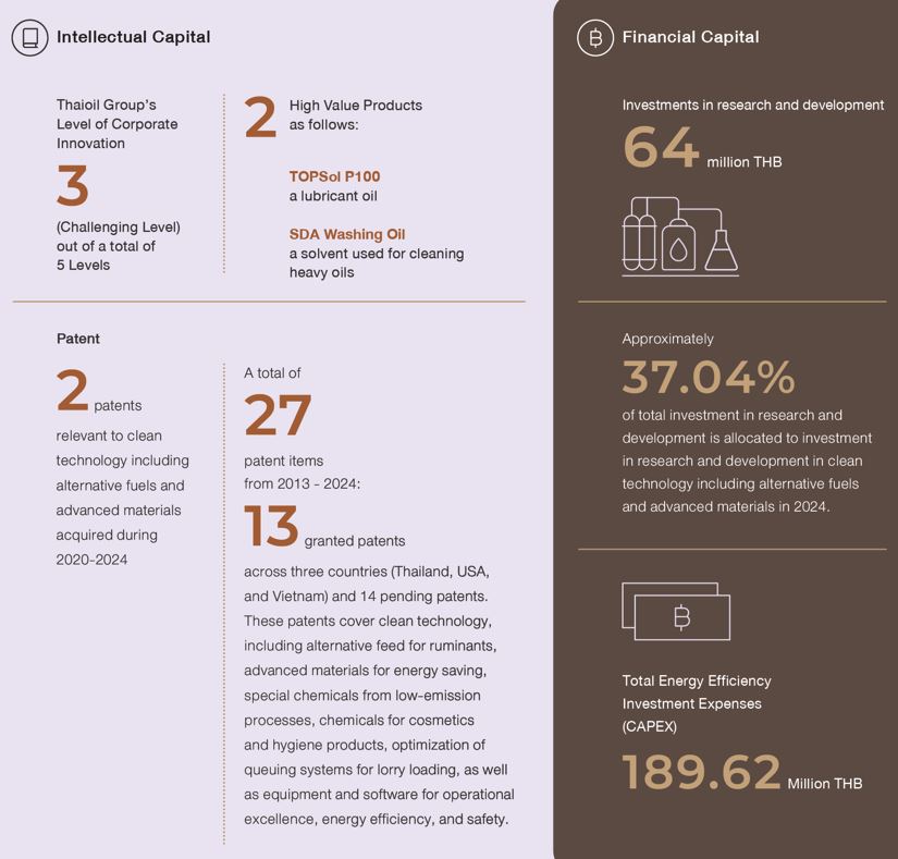 The 11-point increase in the corporate innovation score over the past two years is a significant achievement for the Company in advancing corporate innovation. Thaioil Group is the only company in the Thai Oil & Gas sector to experience such an increase, reaching the “TOP Quartile” level, with an increase of more than 5 points per year. This achievement is attributed to the dedication of employees at all levels in continuously elevating corporate innovation to be on par with leading companies both in Thailand and internationally.